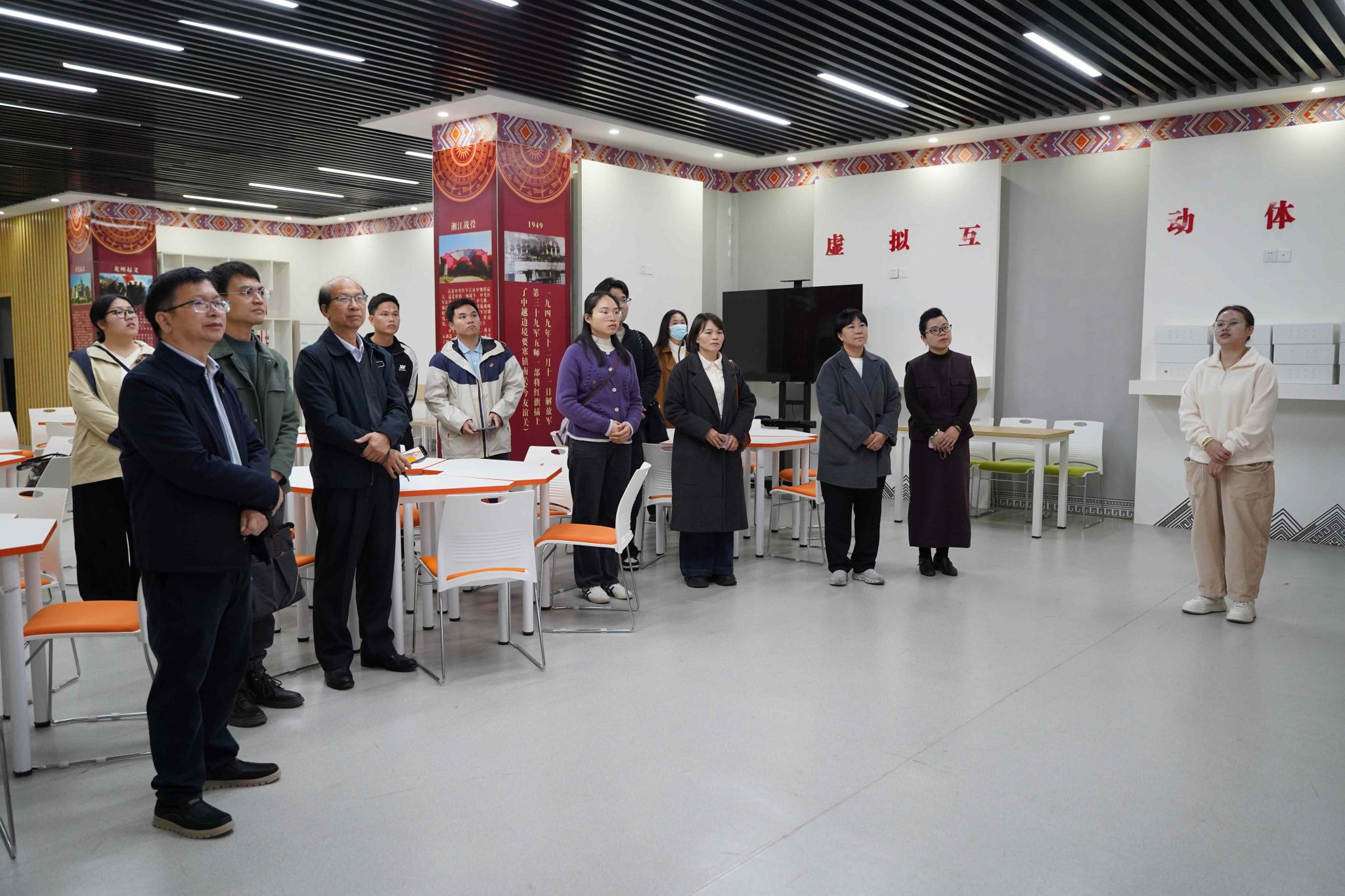 罗必本一行首先实地走访马克思主义学院党史育人画廊、科学社会主义发展史教育馆、马克思主义理论教育广场、虚拟仿真实验室等阵地。在交流会上,双方聚焦党建工作、思政专业建设、大中小学思政课一体化建设、铸牢中华民族共同体意识教育及新入职教师培养等问题深入探讨、各抒己见。