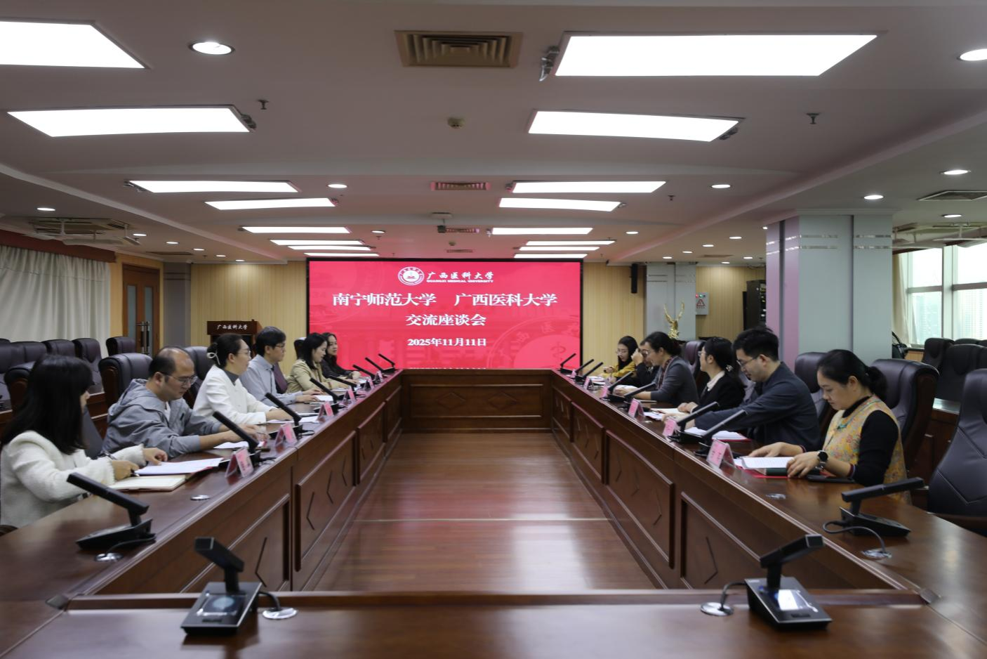 座谈会上,广西医科大学党校办于夫副主任对调研组一行表示热烈欢迎,结合宣传片介绍了学校发展概况,表达了进一步加强校际联系、深化交流互鉴、促进共同发展的意向。best365官网国内合作处长区丽媛介绍了学校发展概况与本部门基本情况,并对广西医科大学长期以来在多领域给予best365官网的宝贵支持表示感谢。她表示,此次调研旨在通过对标学习区内先进高校的成熟经验与创新做法,重点围绕国内合作机制、校友联络服务、工会职能发挥以及附属幼儿园规范运营等议题进行交流,希望通过此次面对面学习,为best365官网相关工作开拓思路、提供借鉴。
