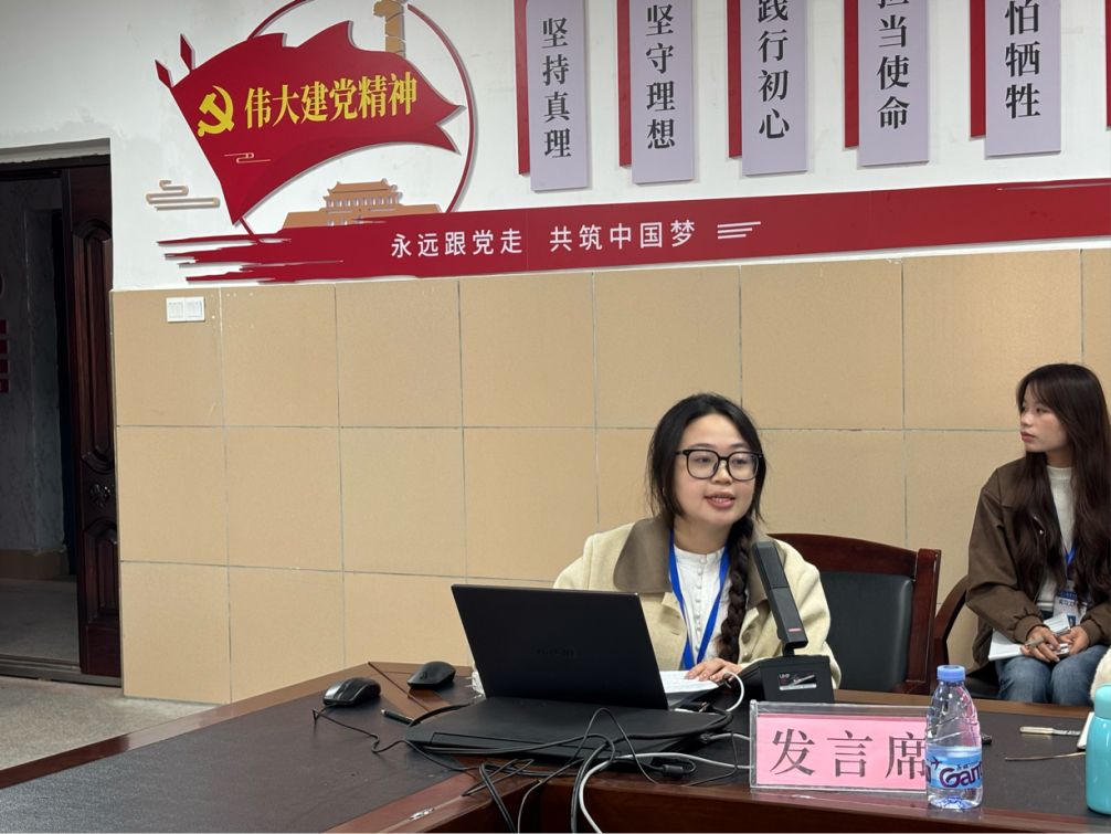 文学院实习带队老师韦玫竹汇报实习生困难疑惑,强调主动提问、与指导教师沟通以提升实操能力。
