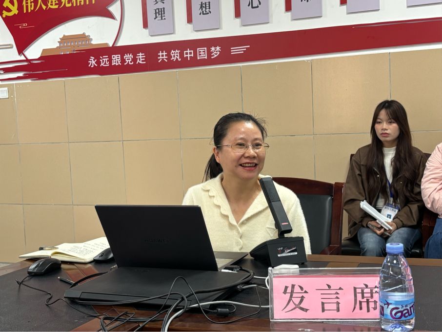 莫庆信副主任欢迎文学院师生到访并介绍会议流程。实习生代表邓诗诗分享实习经历,总结中期收获,感谢五中为大家提供学习的平台。五中指导教师代表黄玫发言,肯定实习生态度,分享指导经验,鼓励其参与班级管理、加强与学生交流。