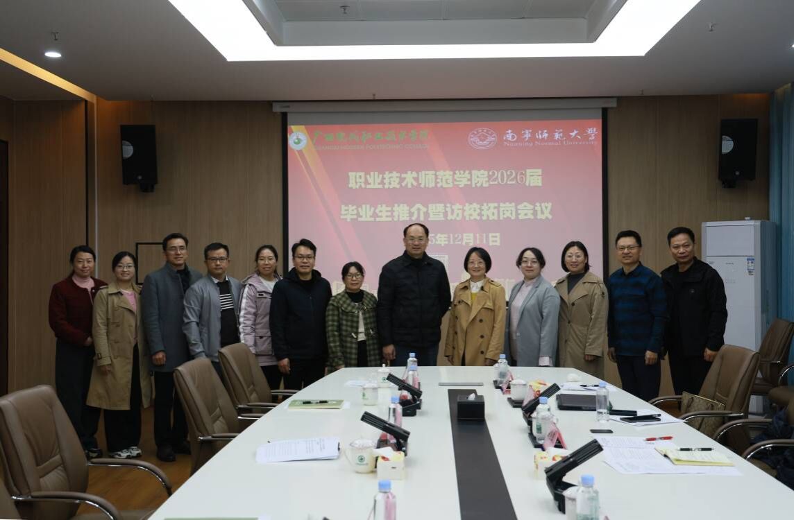为加强我院各专业的宣传力度和拓宽学生就业渠道,12月11日,职业技术师范学院党委副书记刘卫华带队一行五人赴广西现代职业技术学院开展访校拓岗。