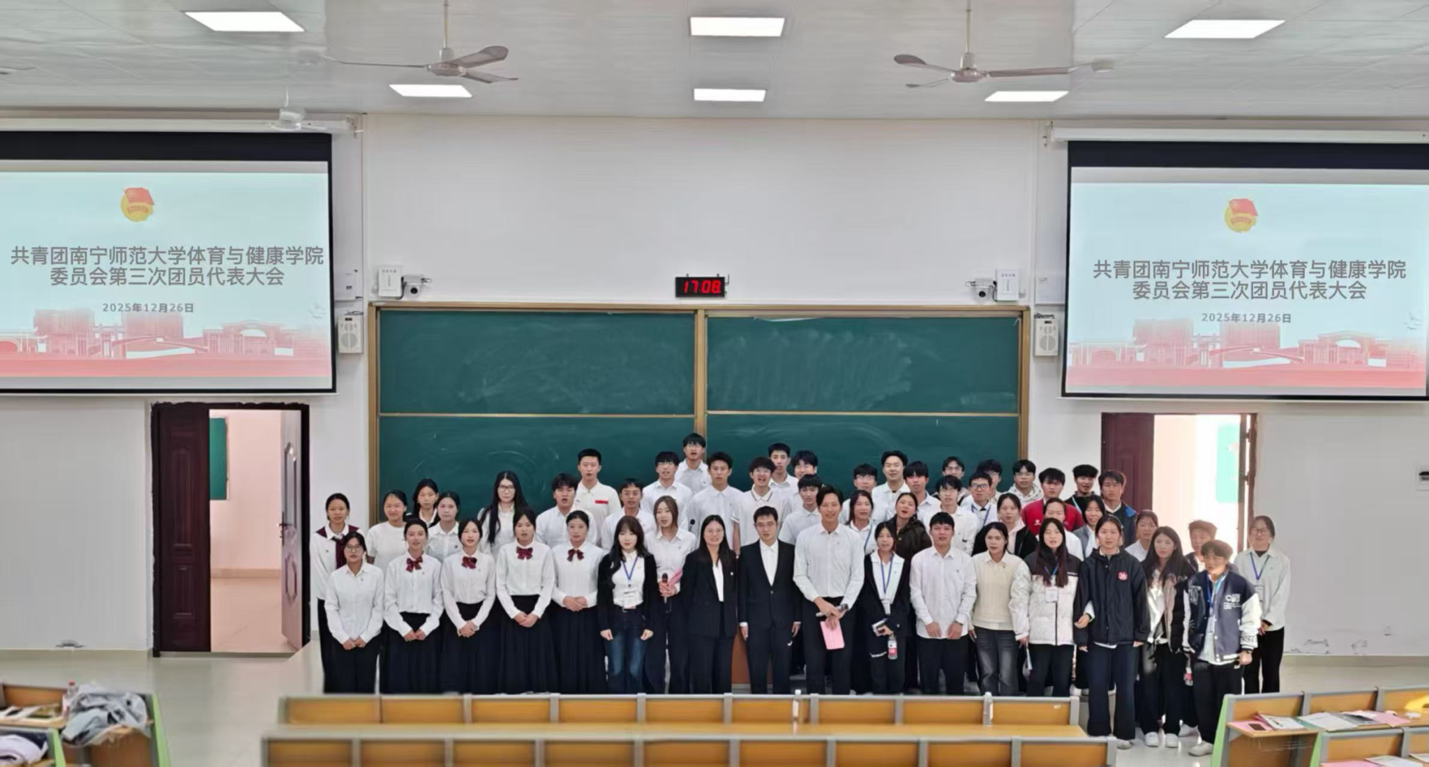 12月26日,共青团best365足球官网体育与健康学院第三次代表大会在武鸣校区一号实验楼B113举行。本次大会承前启后,汇聚共识,共绘学院共青团事业发展新蓝图。校团委副书记何俊斌、学院党委书记磨有积、副书记陈军弟,与来自各年级学生代表、团委学生会的代表一同参会。