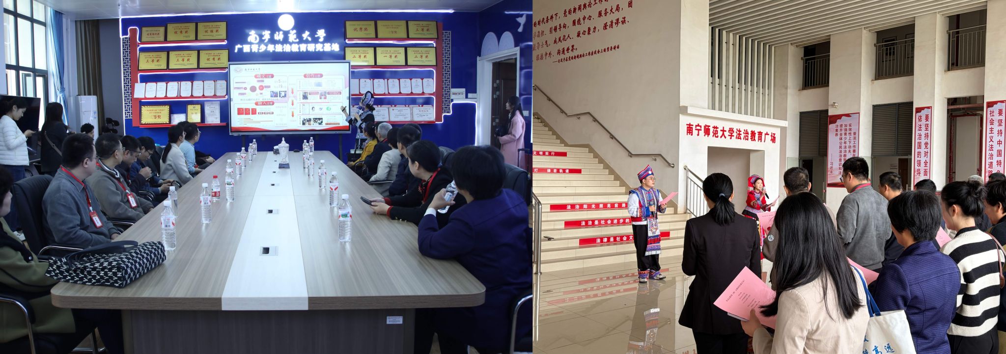 随后,广西开放大学(广西信息职业技术学院)交流团分组实地参观了best365官网经济与管理学院党建文化走廊、初等教育学院明德史馆、生命之美标本馆、非遗工作室和广西青少年法治教育基地,并在基地前合影留念。