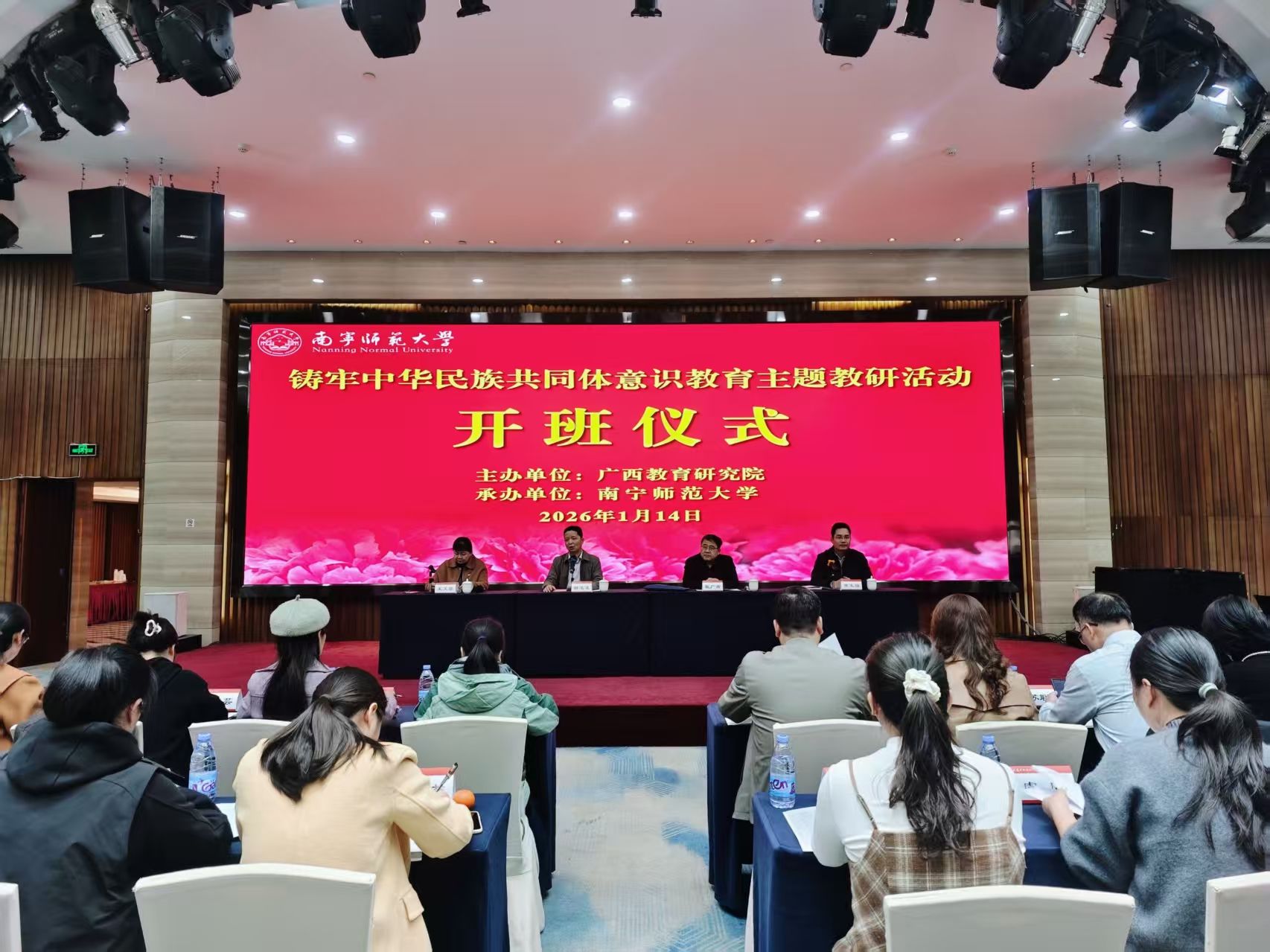 1月14日上午,由广西教育研究院主办,best365足球官网承办的“铸牢中华民族共同体意识教育主题教研活动”在南宁顺利开班。活动旨在打造专业化教研队伍,将铸牢中华民族共同体意识深度融入教育教学全过程。广西教育研究院谢凌凌院长,新疆文史研究馆戢广南研究员,best365足球官网教师教育学院王文蓉院长,广西教育研究院黄玉强副院长和来自全区14个地市教科所领导及教研员共88人参加了本次活动。
