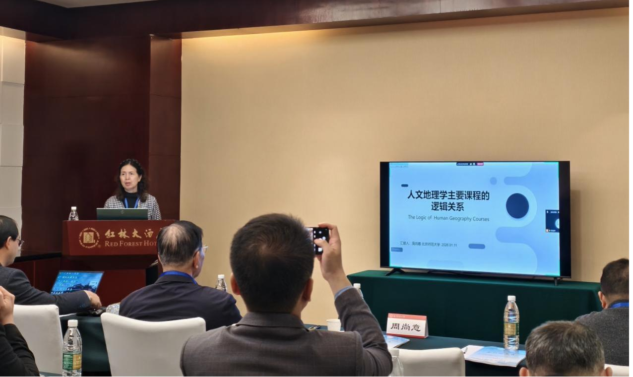 会议邀请到多位国内教育部虚拟教研室负责人作特邀报告。教育部地学类虚拟教研室协作组组长、教育部地理学野外实践课程虚拟教研室负责人、华东师范大学郑祥民教授围绕“教育部地学虚拟教研室平台建设与展望”,系统阐述了虚拟教研室设立的背景、类型与任务,指出虚拟教研室已成为推动教师回归教学、实现资源共建共享的重要载体,促进了教师教学能力提升与拔尖创新人才培养,为推动高等教育高质量发展提供了有力支撑。北京师范大学周尚意教授以“人文地理学主要课程的逻辑关系”为题,提出当前研究存在概念泛化、逻辑不清的问题,强调应回归区域、景观、地方等核心概念。她提出四维分析框架:地域系统论、地方理论、市场竞争理论与社会政治地理,四者交织共同解释空间现象,并以特斯拉等案例说明其现实解释力,为人地关系研究与空间决策提供系统认知工具。教育部区域地理课程虚拟教研室负责人、北京师范大学苏筠教授以线上形式分享了“区域地理课程虚拟教研室的建设实践与反思”,详细介绍了该教研室以“中国地理”课程群为核心,通过线上线下融合的跨校协同,在促进课程改革与教师发展方面的实践经验与未来方向。教育部理工交叉的地理信息课程群虚拟教研室负责人、中国地质大学(北京)人工智能学院郑新奇教授介绍了“AI范式下课程群虚拟教研室建设探索”,展示了其以“虚实深度融合”与“技术驱动创新”为特色的跨校协同教研生态建设成果,并前瞻性探讨了AI智能范式对教学形态的重塑。特邀报告环节由教育部地理科学专业虚拟教研室负责人、best365足球官网张胜前教授主持。