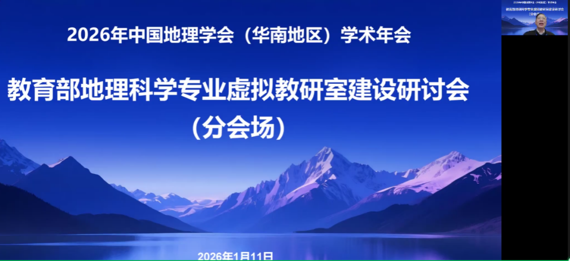为深入推动地理科学专业虚拟教研室的创新建设与发展,深化跨区域、跨高校的教学协同与资源共享,教育部地理科学专业虚拟教研室于2026年1月11日下午在南宁成功举办“教育部地理科学专业虚拟教研室建设研讨会”。作为“2026年中国地理学会(华南地区)学术年会”的重要分论坛之一,本次研讨会以“聚焦虚拟教研,促进协同育人”为主题,采用“线下主会场+线上直播”相结合的形式召开,汇聚了来自全国各高校的地理教育工作者、研究人员及一线教师,共同探讨虚拟教研室的机制建设、课程改革与教师发展等重要议题。