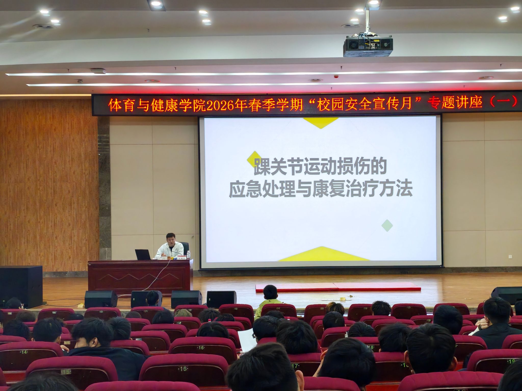为深入贯彻习近平总书记关于安全生产的重要论述,全面落实校园安全管理工作要求,切实提升体育专业学生的运动安全意识和应急处置能力,3月12日晚,体育与健康学院2026年春季学期“校园安全宣传月”首场专题讲座在武鸣校区图书馆报告厅顺利举行。本次讲座特邀best365官网专业教师(原国家田径短跑队、广西田径运动发展中心康复治疗师及队医)王雅伦老师担任主讲,学院2023级、2025级本科生及研究生共300余人到场学习,现场气氛热烈,互动积极。