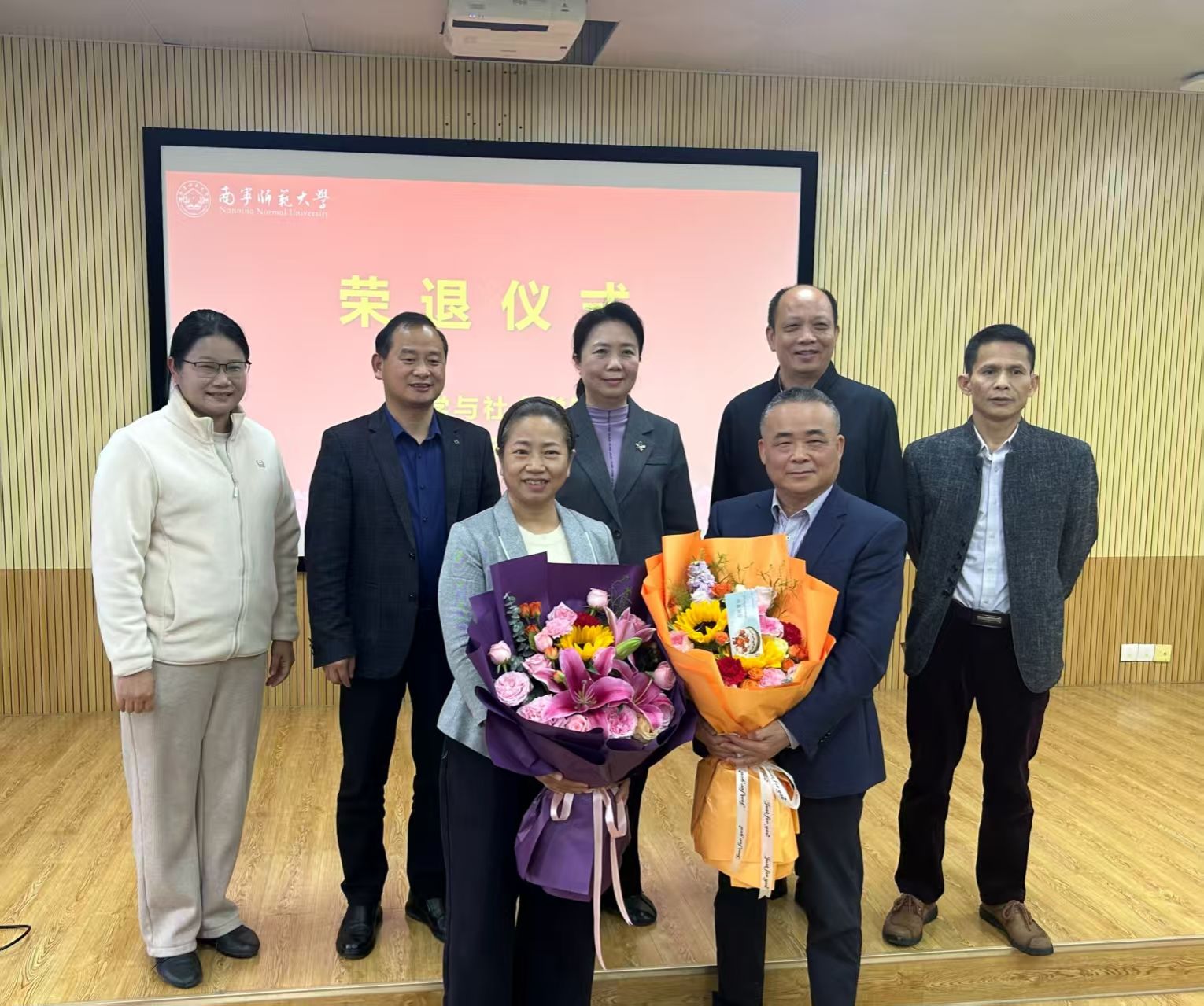 岁月染芳华,桃李沁芬芳。为致敬荣退教师的无私奉献,传承尊师重教的优良传统,3月10日下午,法学与社会学院在五合校区理综720会议室举行教师荣退仪式,温情欢送法律系韦贤斌、历史系陈小锦两位光荣退休教师。学院全体领导班子成员、全体教职工参加了仪式,本次活动由学院党委书记许建主持。
