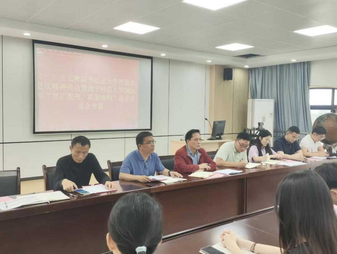 王卫彬传达学校就业工作会议精神,并详细布置best365足球官网2026年“智汇数理,职聚南师”就业双选会相关筹备工作,明确双选会组织、学生动员、岗位对接等重点任务,结合学院专业特色与就业形势,对下一阶段学院就业创业重点工作进行全面部署。他强调,要细化工作目标、压实工作责任聚焦毕业生求职需求,强化分类指导与精准帮扶。