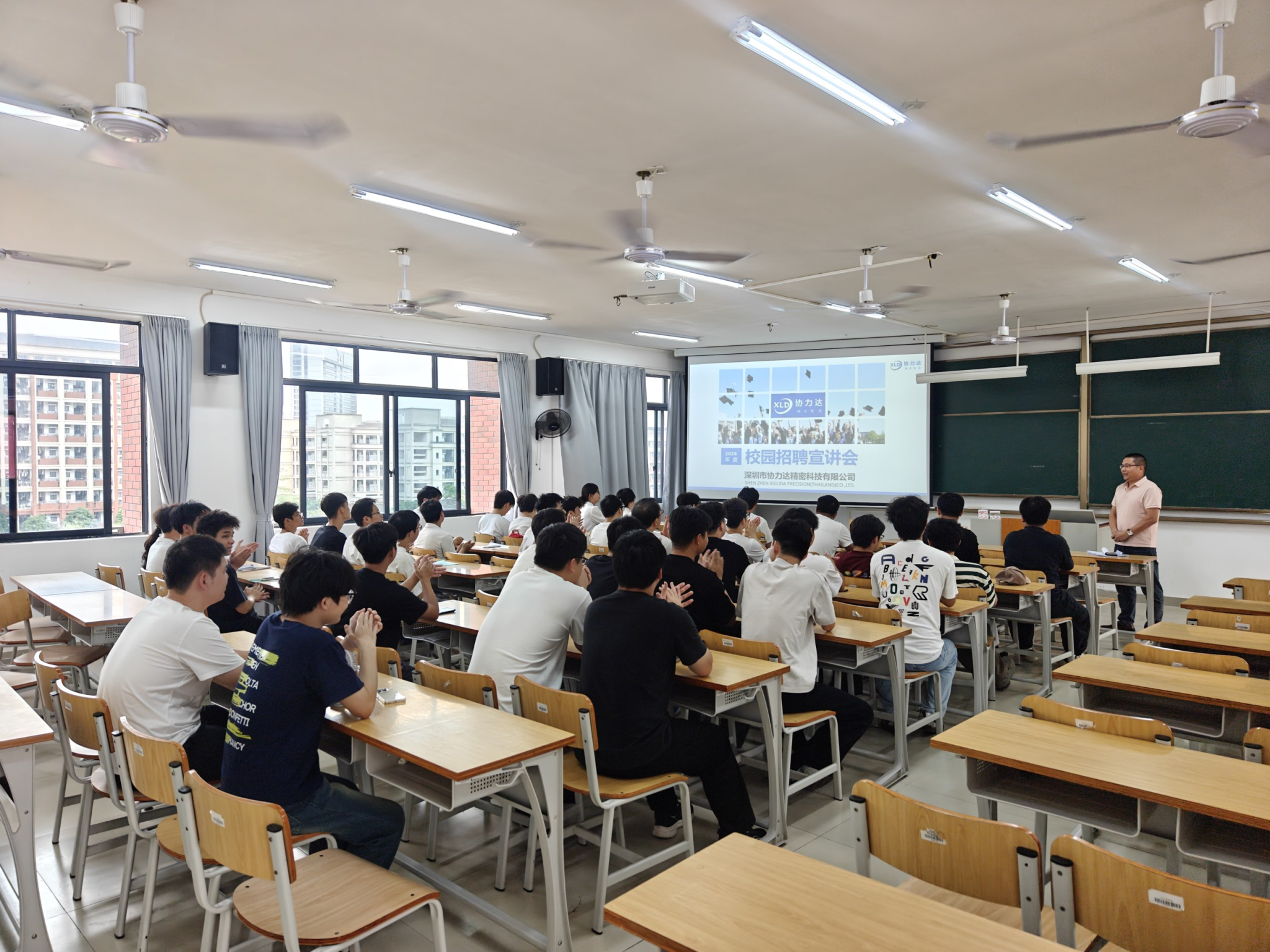 宣讲环节,深圳协力达精密科技有限公司陈总、严经理系统介绍了公司的发展历程、核心业务与行业前景,深圳协力达是国内压铸行业龙头公司之一,公司产品有机器人,光模块、红外等精密结构件等,并提供研发设计岗、工艺技术岗、储干岗等与我院专业紧密结合的岗位。详细解读了岗位职责、任职要求、薪酬福利及职业发展通道,让在场学子清晰了解职业成长路径。