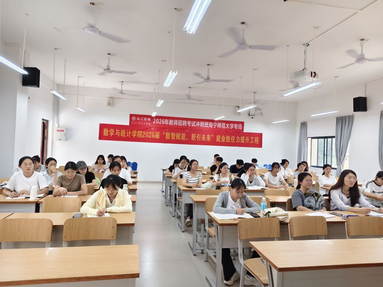 为助力2026届毕业生夯实备考基础,切实提升应试能力,4月14日、16日,数学与统计学院分别举办两场教师招聘专项讲座,特邀志公教育张旭年老师、数统学院赵飞老师主讲,精准对接学子需求,为毕业生备考保驾护航,助力学子实现就业目标。