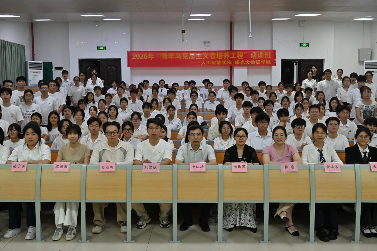 为深入学习贯彻习近平新时代中国特色社会主义思想和党的二十届四中全会精神,人工智能学院/曙光大数据学院于4月15日举行“青年马克思主义者培养工程”培训班(以下简称“青马班”)开班仪式暨第一讲。学院党委副书记(主持党委工作)黄江涛担任主讲,学院党委副书记韦柳温、团委书记宋宏斌、学院辅导员林雪、史朝有、黄海泳、覃敏薇以及青马班全体学员参加。
