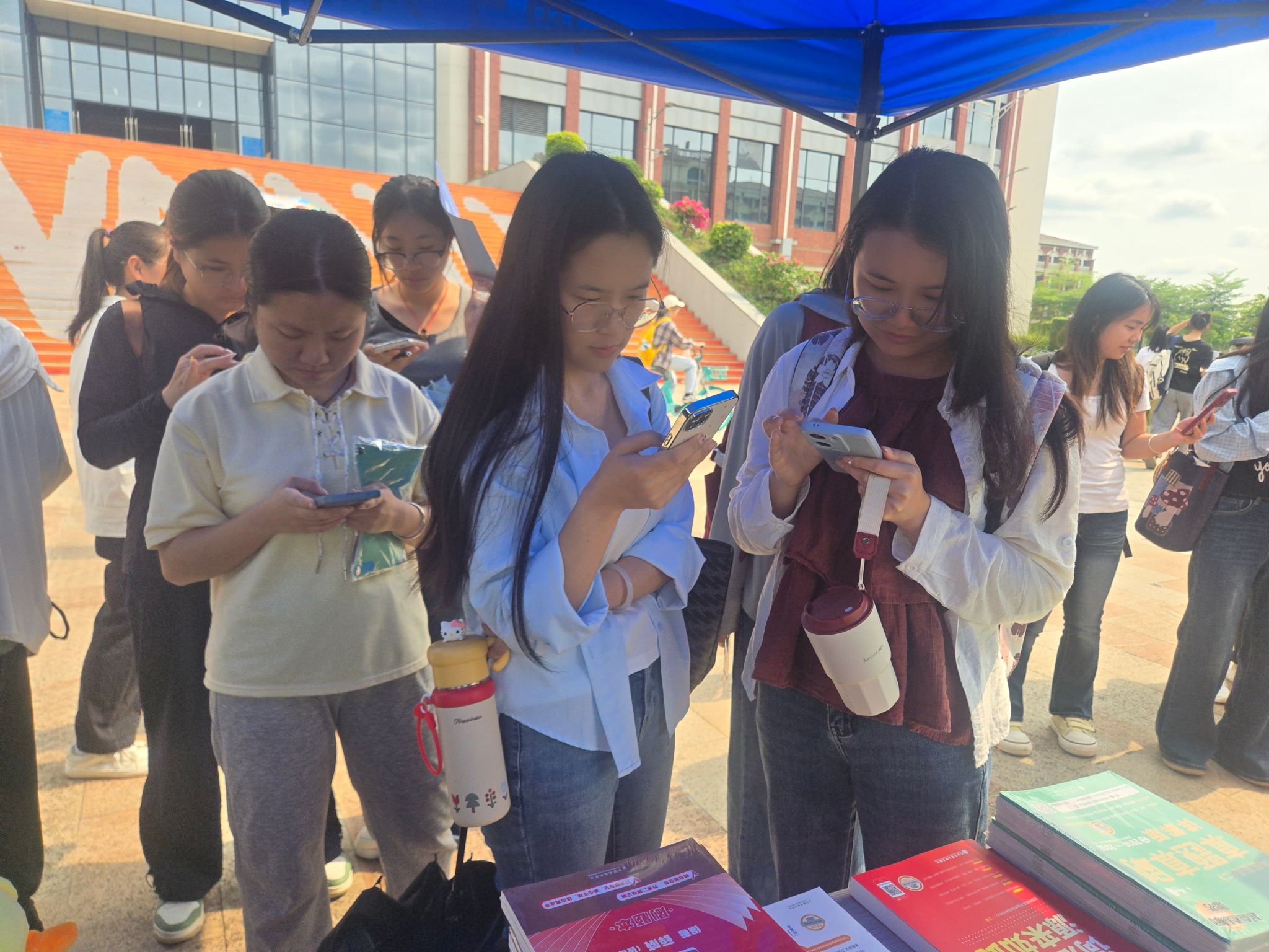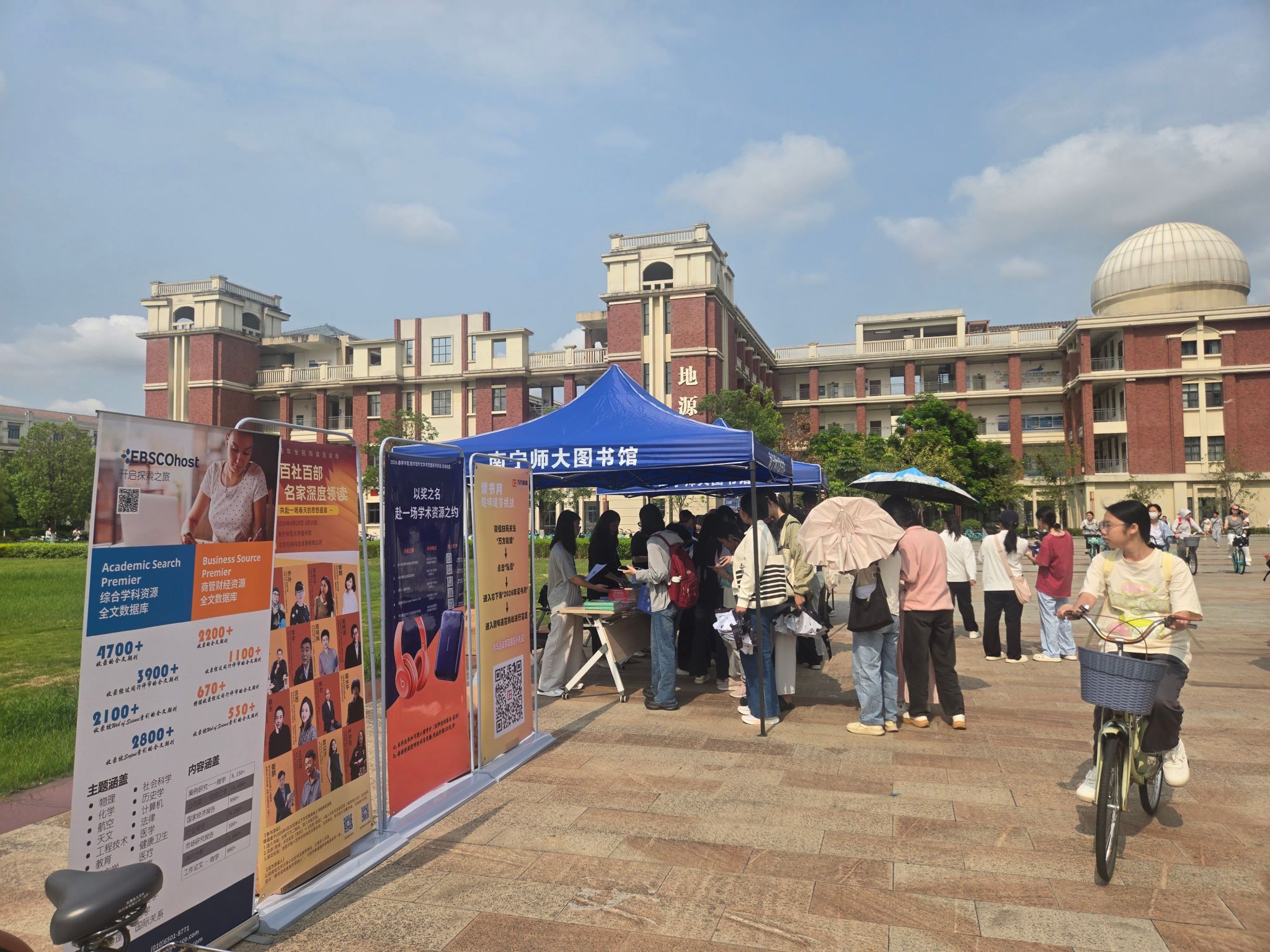 活动期间,图书馆不仅联合各数据库商举办中外文专题数据库使用培训讲座,助力师生提升信息检索素养、提高数字资源利用率,还在4月23日启动当天,携手超星、万方、皮书、起点、可知等多家数据库商,同步在武鸣、五合两校区开展读书月暨首个全民阅读周宣传推广活动,内容涵盖AI馆员体验、电子书荐购、数字资源介绍及读书月各项活动宣传推广,并发布best365官网2025年度“读书明星”和“移动阅读之星”评选结果,以此树立读书榜样,引领校园读书风尚,进一步激发全体师生的阅读热情。其中,AI馆员成为本次现场宣传活动的一大亮点。AI馆员可为师生提供馆藏图书查询、馆内资源与服务咨询等基础服务,同时搭载AI翻译、AI阅读等特色功能,全方位助力师生多元化获取知识、开展学术研究。不少读者在与AI馆员互动后表示,对人工智能技术在图书馆服务中的创新应用有了全新认知。此外,“考研书免费送”活动深受读者关注,电子书荐购、数字资源推广等活动也吸引了大量读者驻足参与、咨询了解。活动现场气氛热烈,参与师生均表示收获满满,不仅深入了解了图书馆的各类服务,也感受到了浓厚的校园阅读氛围。