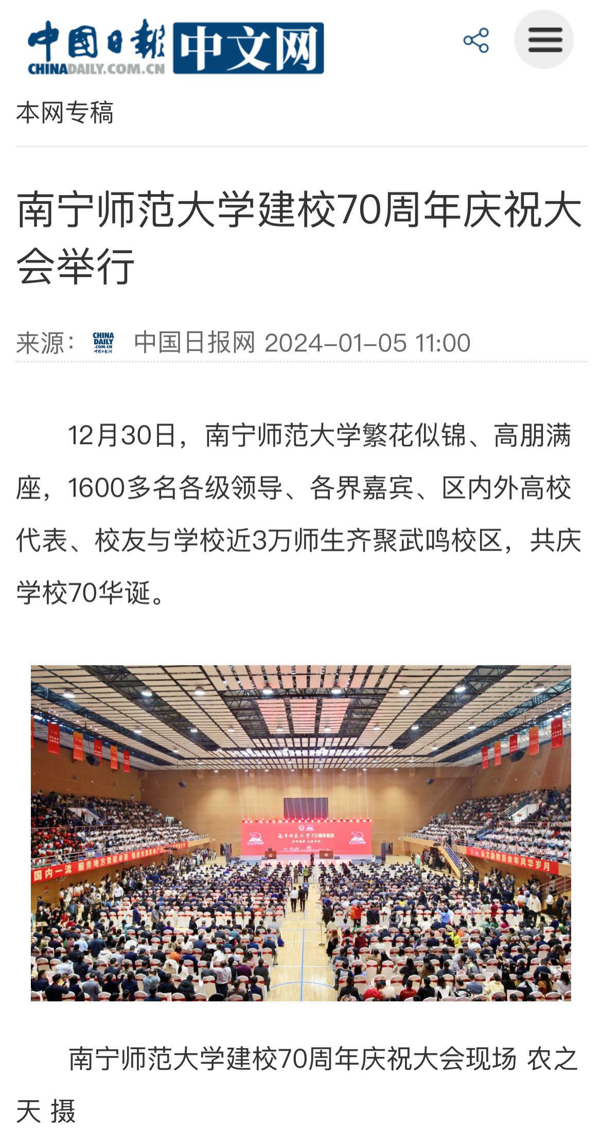 【中国日报网】:best365足球官网建校70周年庆祝大会举行