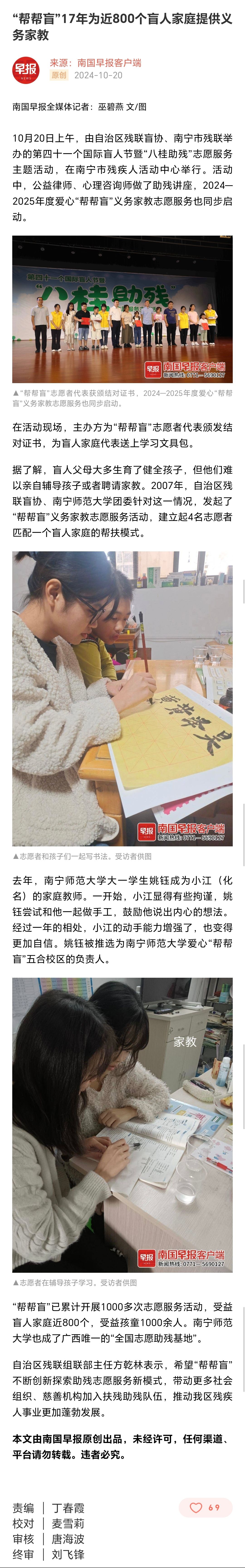 【南国早报】“帮帮盲”17年为近800个盲人家庭提供义务家教