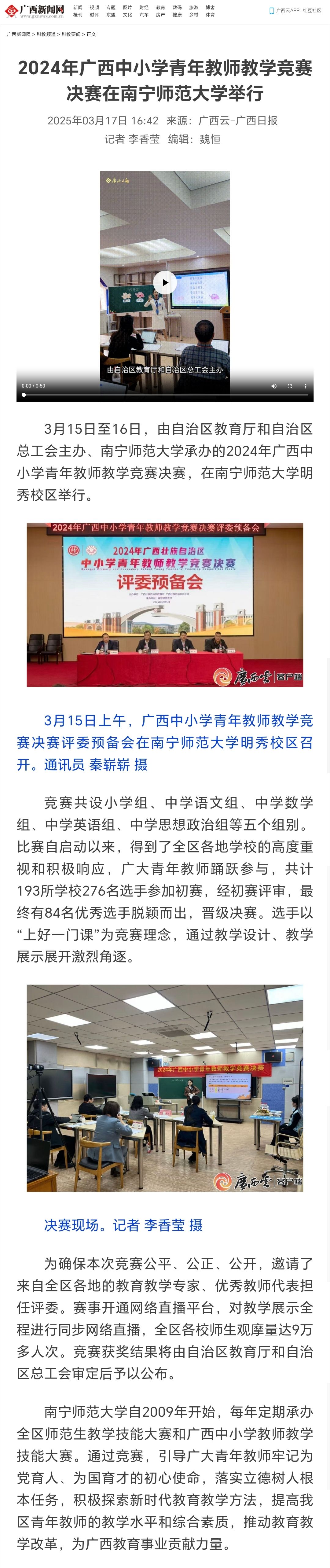 【广西新闻网】2024年广西中小学青年教师教学竞赛决赛在best365足球官网举行