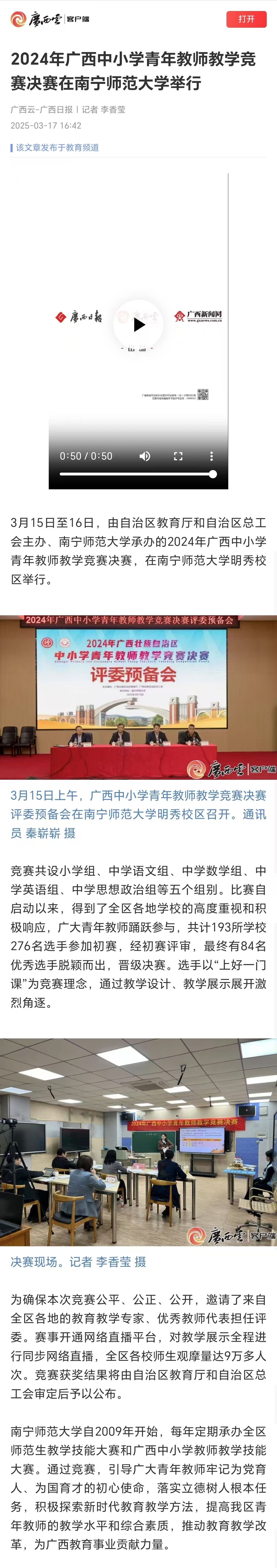 【广西新闻网】2024年广西中小学青年教师教学竞赛决赛在best365足球官网举行
