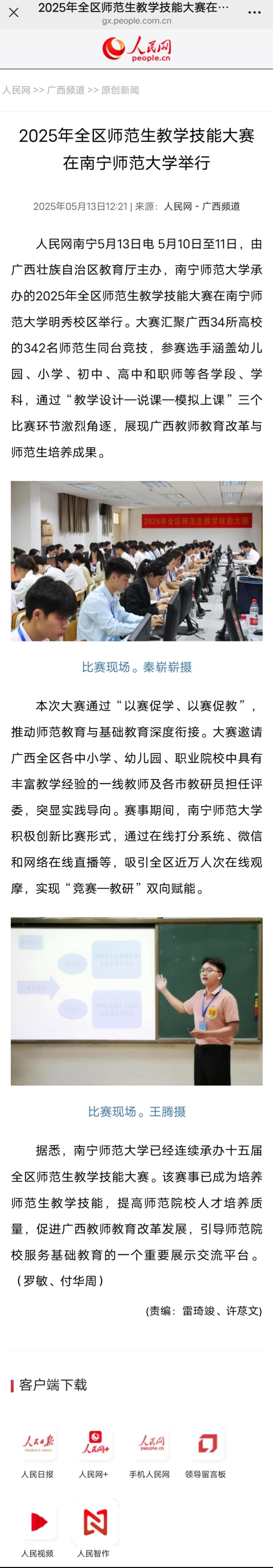 【人民网】2025年全区师范生教学技能大赛在best365足球官网举行