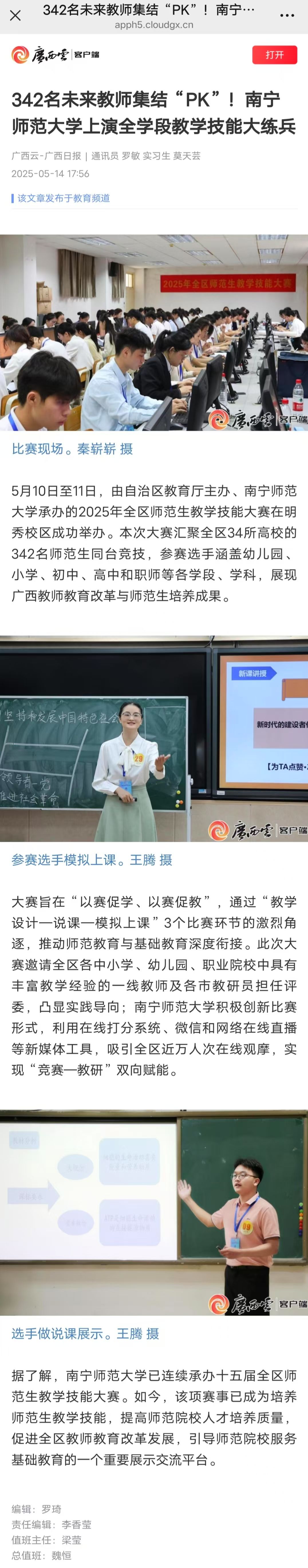 【广西日报-广西云客户端】342名未来教师集结“PK”!best365足球官网上演全学段教学技能大练兵