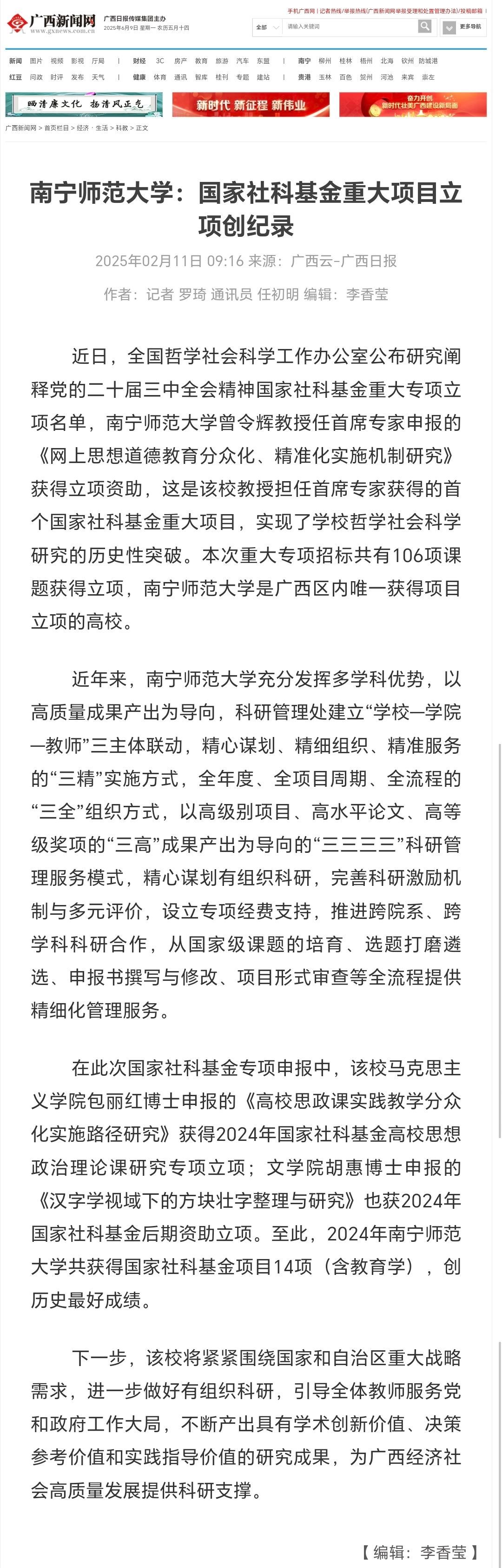 【广西云-广西日报】best365足球官网:国家社科基金重大项目立项创纪录