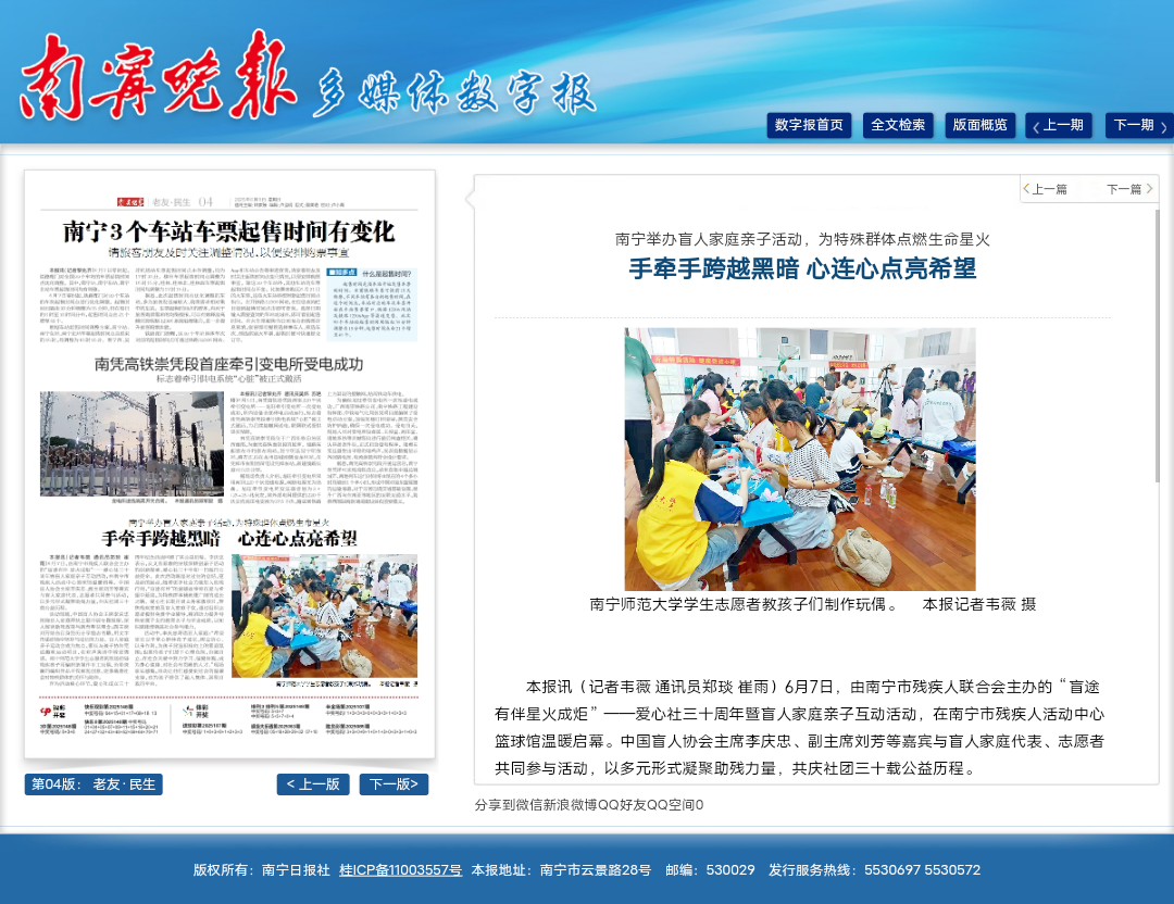 【南宁晚报】南宁举办盲人家庭亲子活动,为特殊群体点燃生命星火手牵手跨越黑暗 心连心点亮希望
