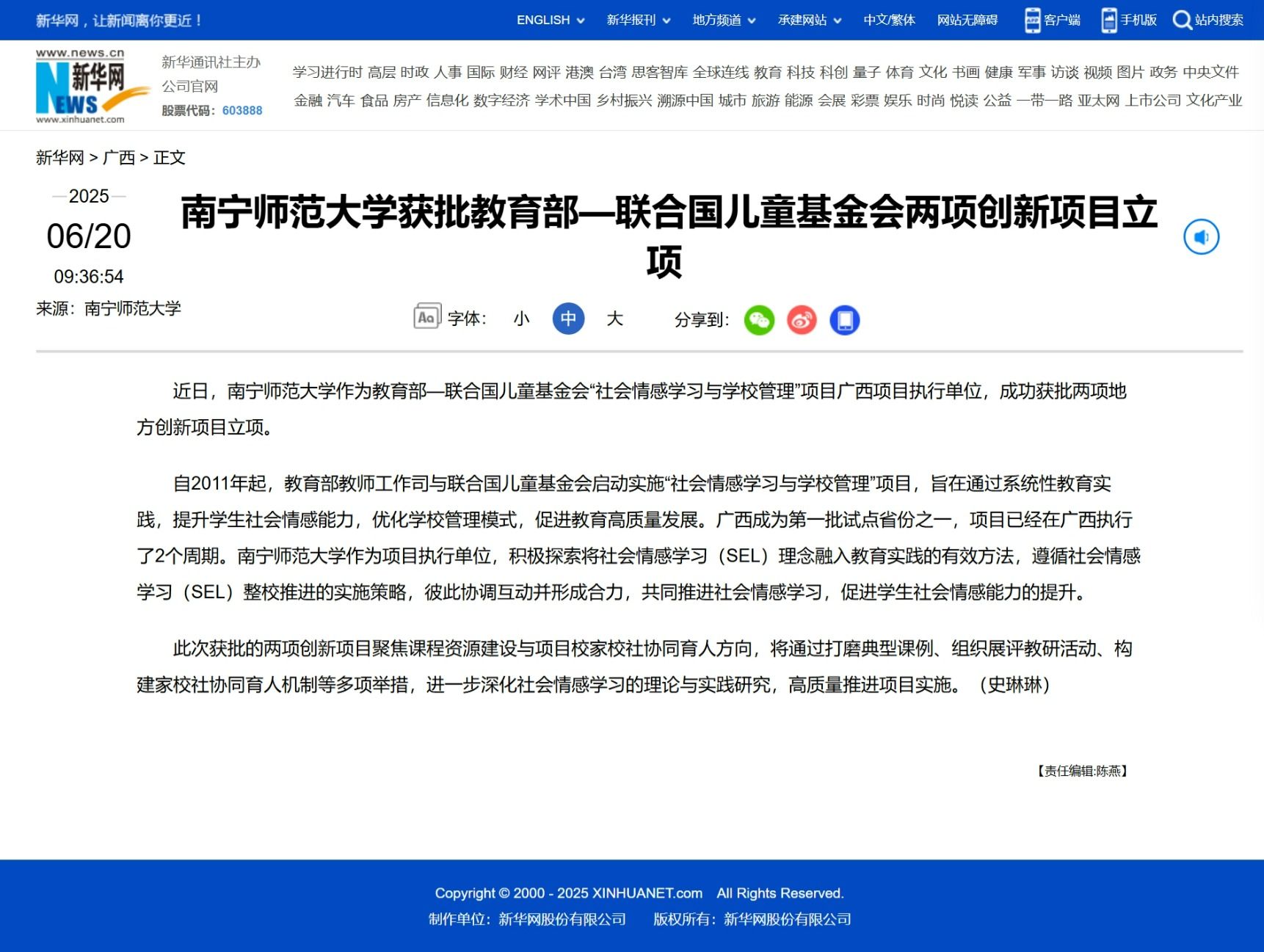 【新华网】best365足球官网获批教育部—联合国儿童基金会两项创新项目立项