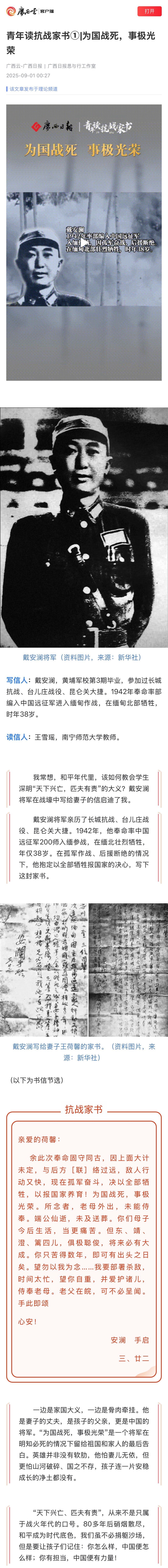 【广西云-广西日报】青年读抗战家书①|为国战死,事极光荣