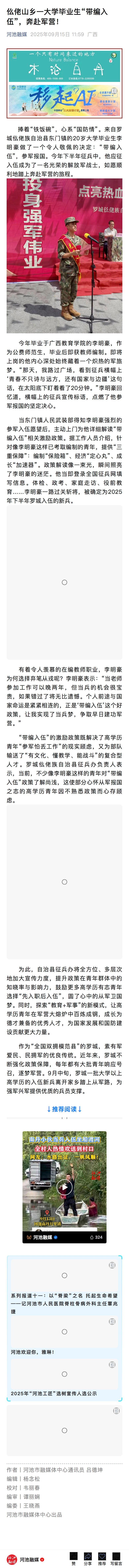 【河池融媒】仫佬山乡一大学毕业生“带编入伍”,奔赴军营!