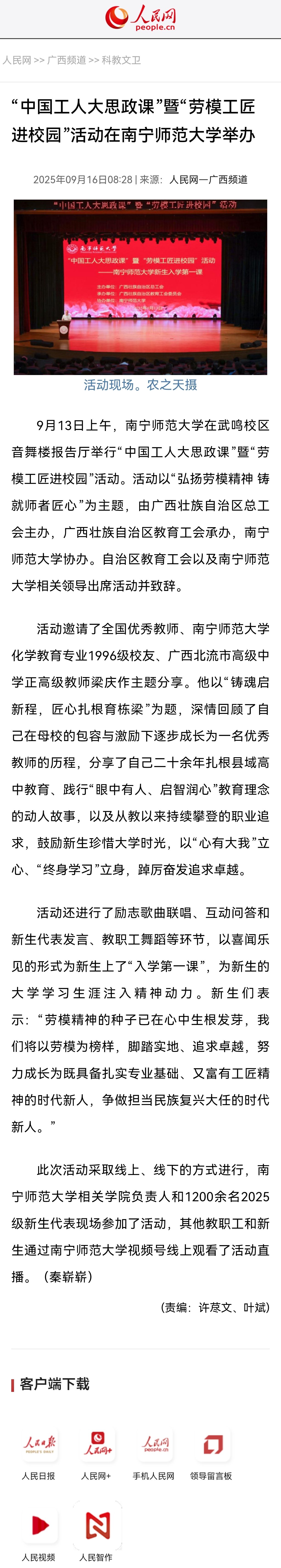 【人民网】“中国工人大思政课”暨“劳模工匠进校园”活动在best365足球官网举办