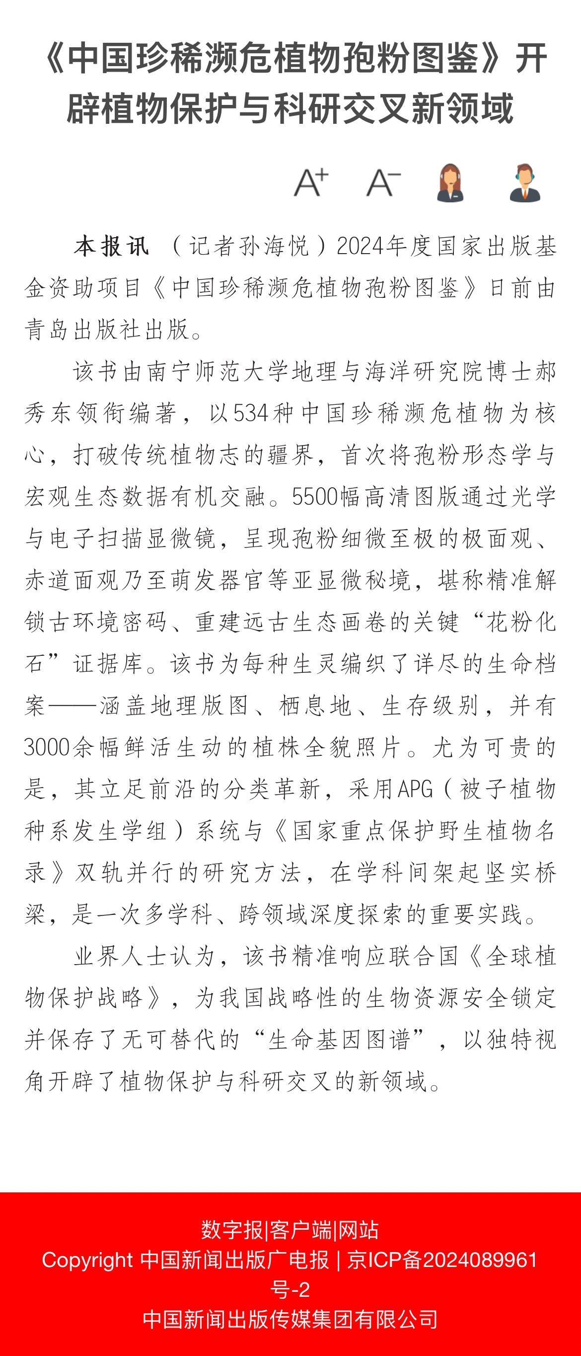 【中国新闻出版广电报】《中国珍稀濒危植物孢粉图鉴》开辟植物保护与科研交叉新领域