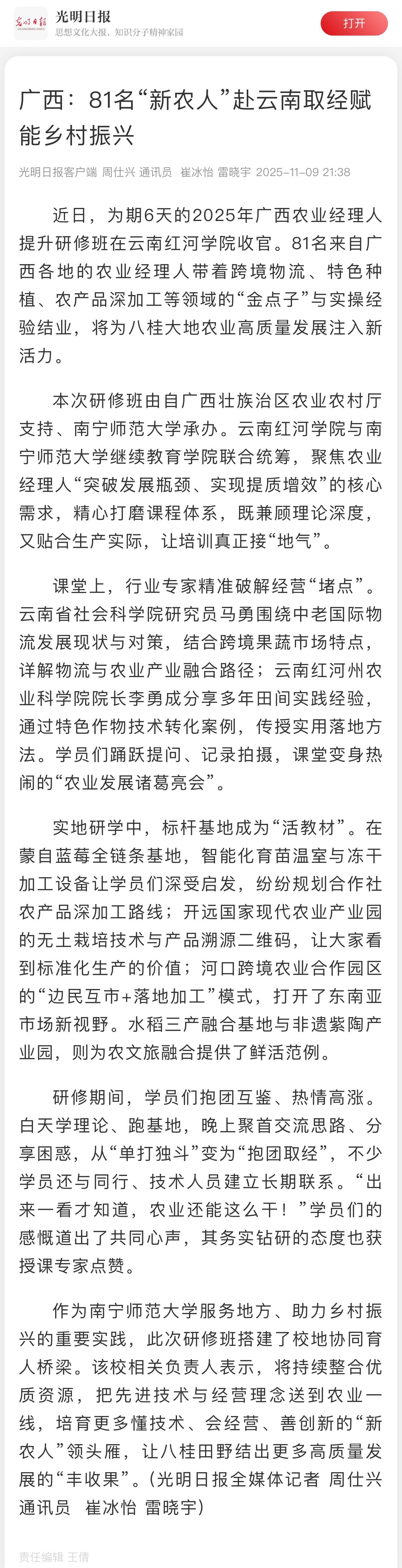【光明日报】广西:81名“新农人”赴云南取经赋能乡村振兴