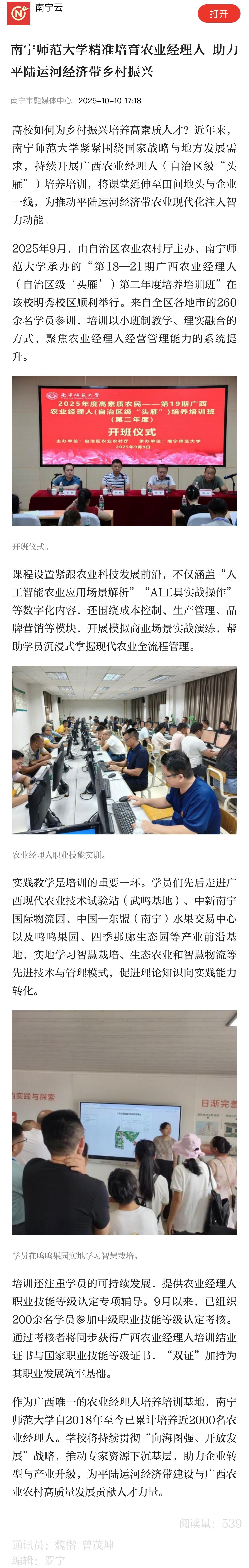 【南宁市融媒体中心】best365足球官网精准培育农业经理人 助力平陆运河经济带乡村振兴