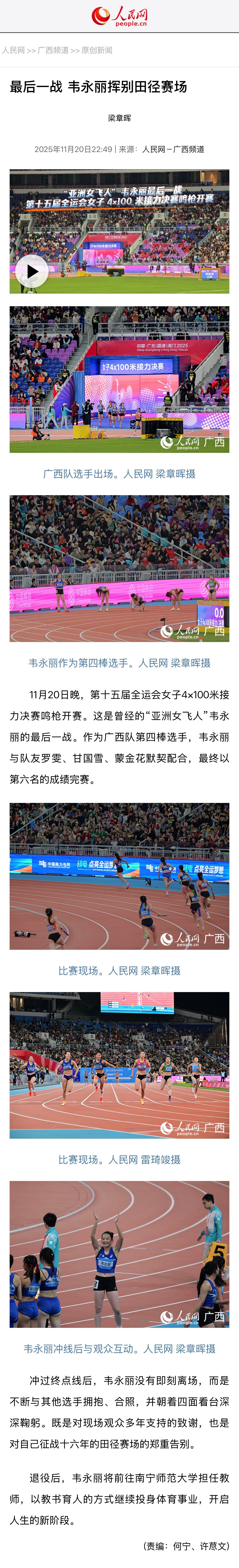 【人民网】最后一战 韦永丽挥别田径赛场