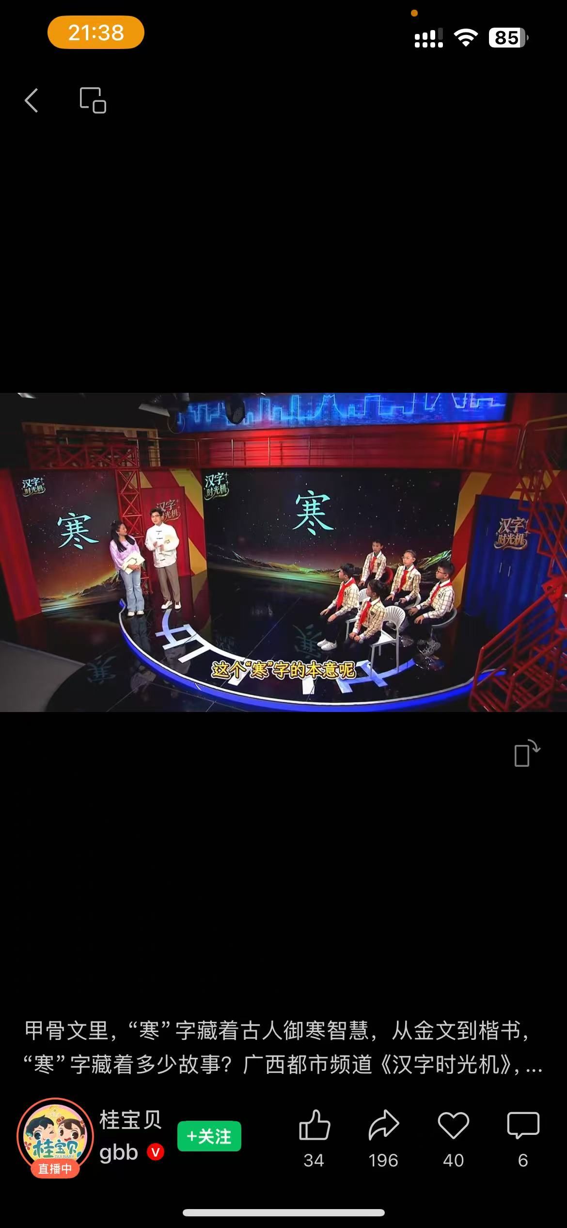 广西电视台都市频道播出的【汉字时光机】《说“寒”字》