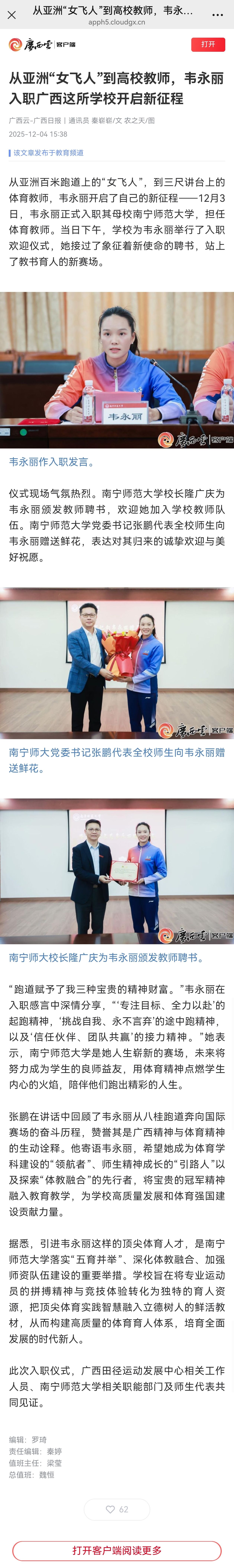 【广西云-广西日报】从亚洲“女飞人”到高校教师,韦永丽入职广西这所学校开启新征程