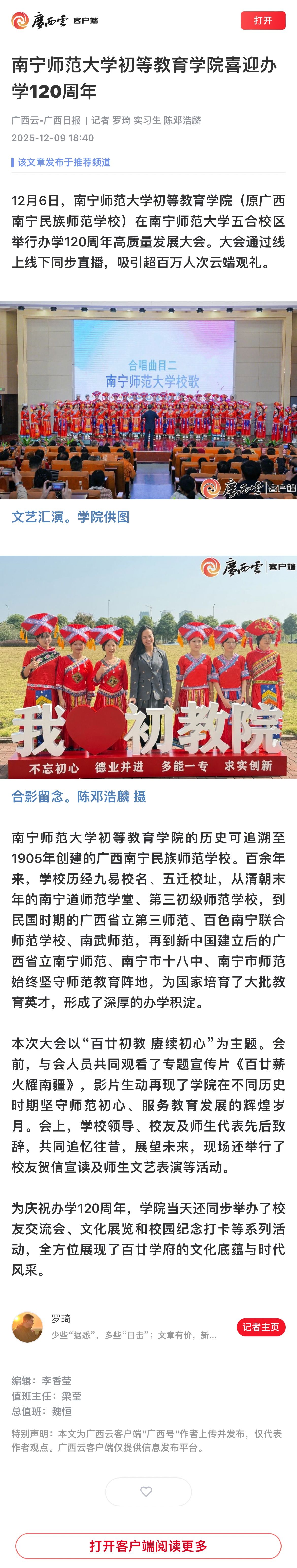 【广西云】best365足球官网初等教育学院喜迎办学120周年