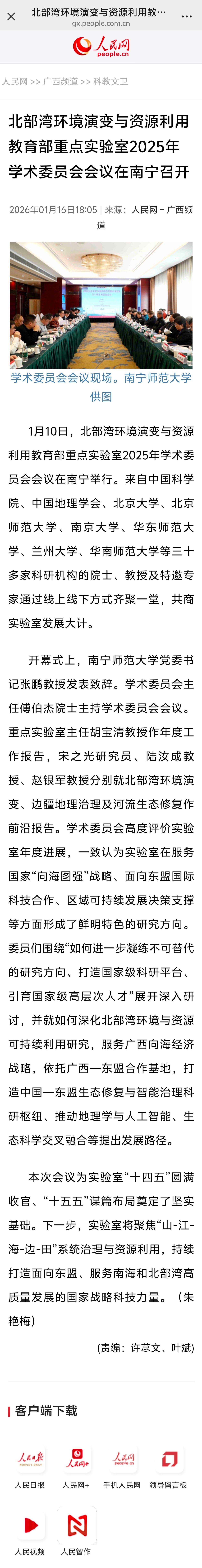【人民网】北部湾环境演变与资源利用教育部重点实验室2025年学术委员会会议在南宁召开
