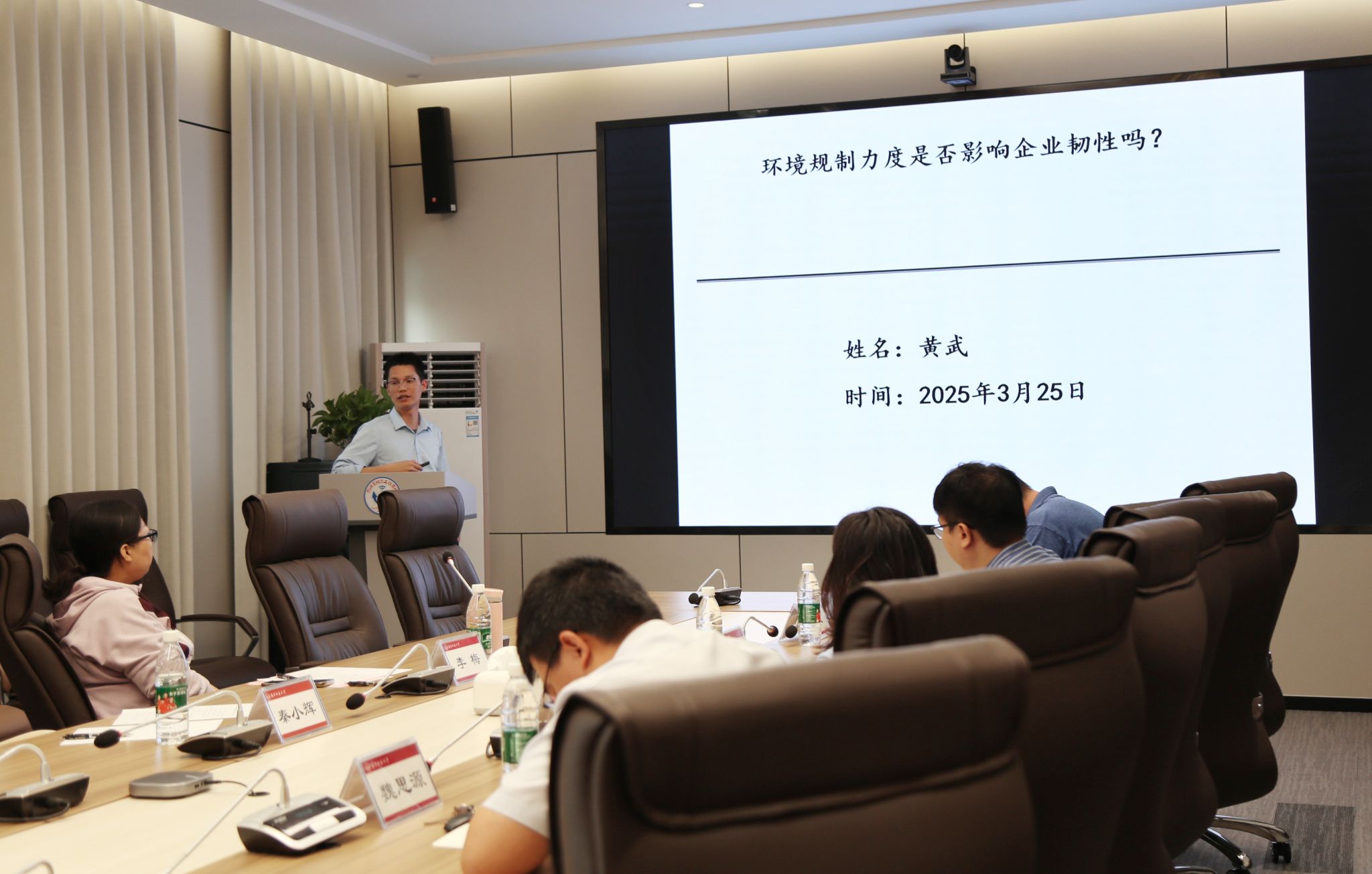刘新全副院长作总结发言。他对两位专家在百忙中莅临指导表示感谢,同时充分肯定了青年博士的科研热情与学术潜力,并鼓励他们在未来研究中继续深耕,争取获得更多高水平的学术成果。他表示,希望学院的青年博士们继续发挥自己的优势,团结一心、凝心聚力,以更加饱满的热情投入到工作中;继续保持对学术的热情,在探索真理的道路上永葆初心,在未来的学术生涯中勇立潮头、成就梦想,用智慧和汗水书写属于青年一代的科研华章,为学院高质量发展贡献自己的力量。