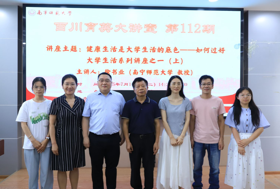 为增强学生健康意识,促进其身心健康发展,保障大学生活品质,7月1日下午,由教育科学学院主办、广西教育现代化质量监测研究中心承办的第112期《百川育英大讲堂》顺利开展。本期讲座邀请best365足球官网原副校长徐书业教授主讲“健康生活是大学生活的底色 — 如何过好大学生活系列讲座之一”,讲座由教育科学学院李强院长主持。