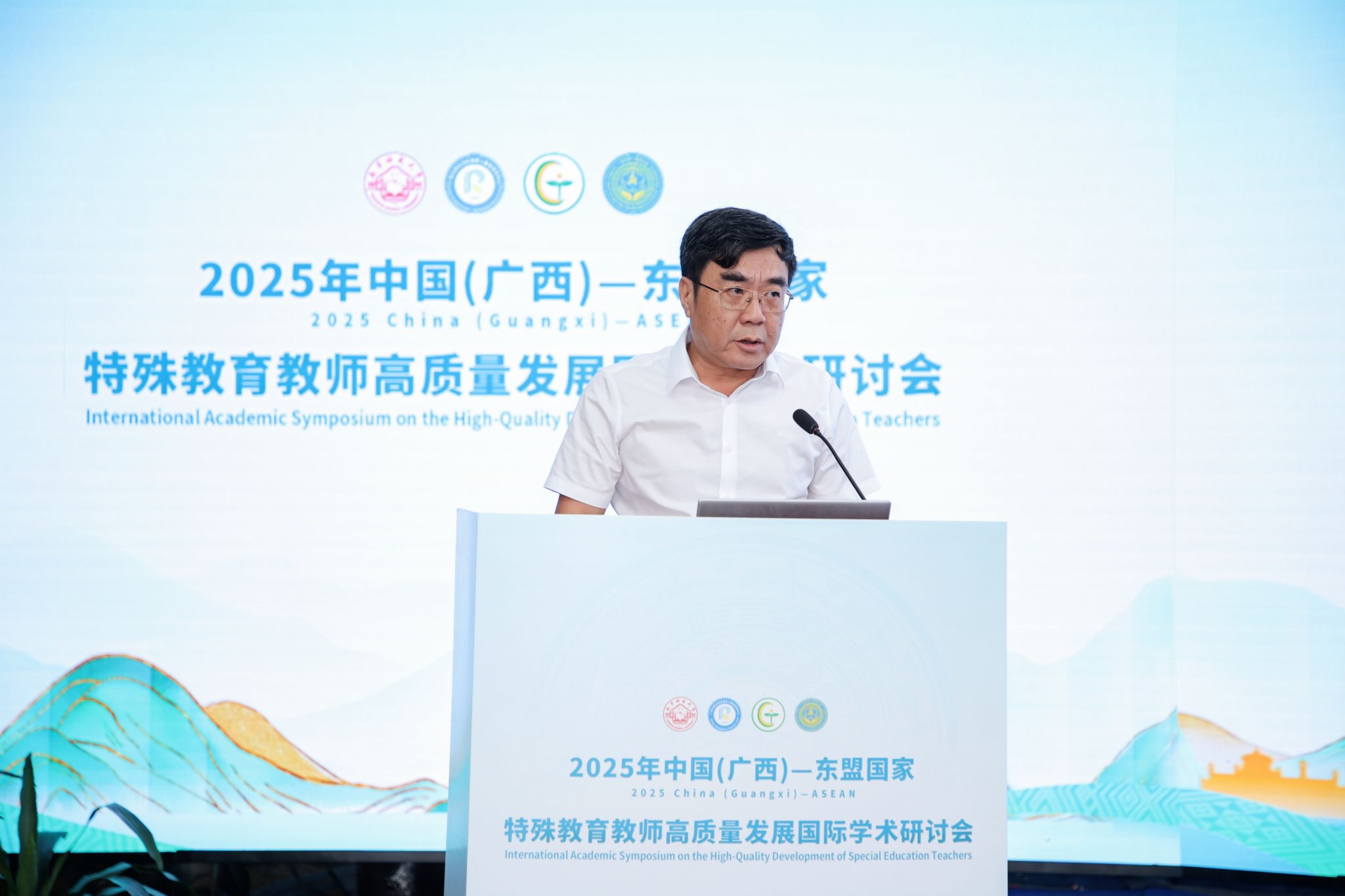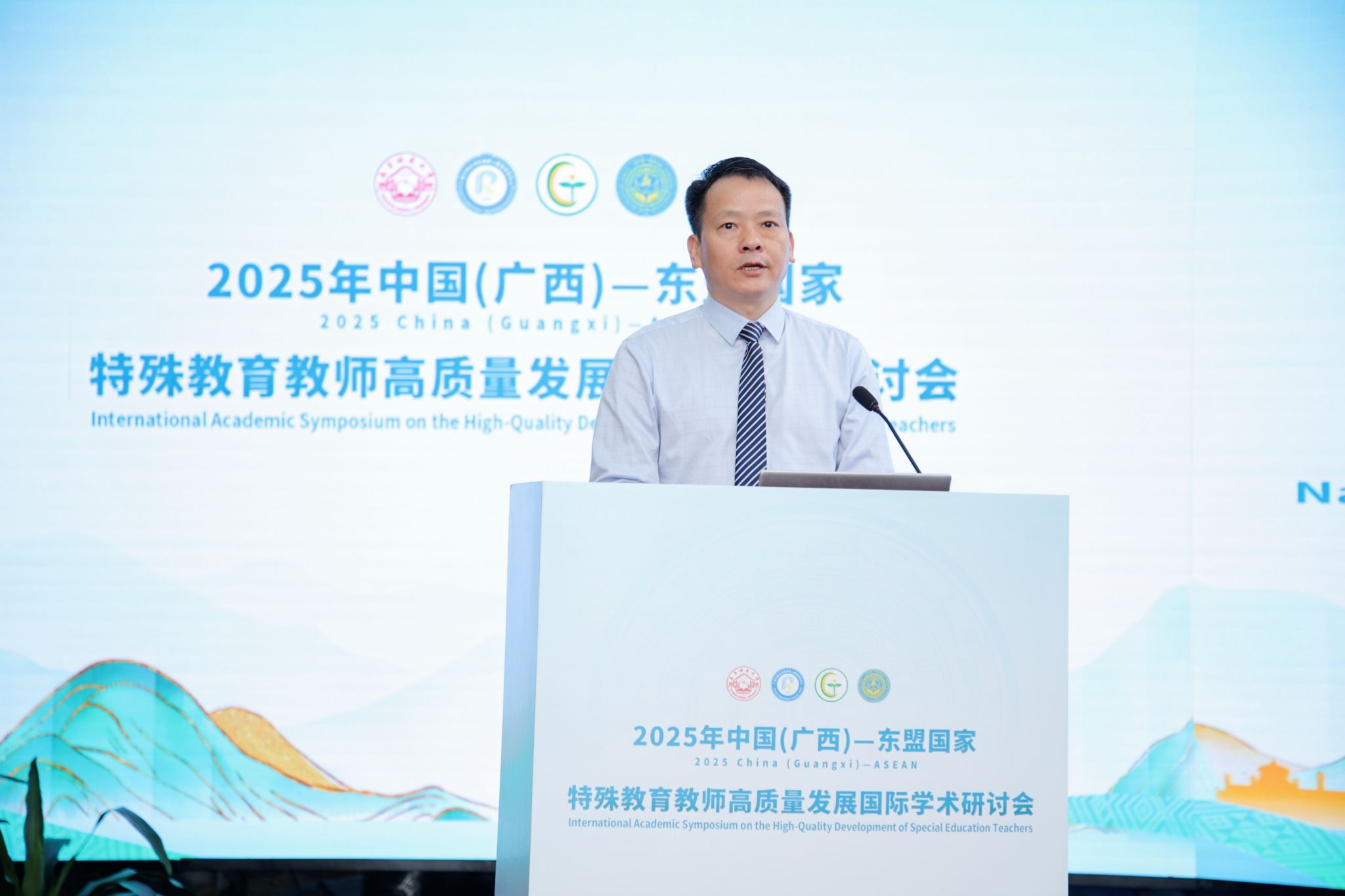 华东师范大学融合教育研究院邓猛教授作题为《AI赋能特殊教育教学变革》的主旨报告,聚焦人工智能为特殊教育教学带来的革新。马来西亚奎斯特国际大学Aznan Che Ahmad 教授、北京联合大学特殊教育学院刘全礼教授、韩国又石大学教育学部Baek Jongnam教授、陕西师范大学教育学部王庭照教授、印度尼西亚马朗国立大学Imanuel Hitipeuw教授、南京特殊教育师范学院特殊教育学院李拉教授、北京大学博雅教育研究院阮立平教授、新加坡高级语言治疗师Jean Ho博士、华南师范大学教育科学学院谌小猛教授、岭南师范学院特殊教育学院郑剑虹教授、广西壮族自治区残疾人康复研究中心主任/广西残疾人康复协会陈国治会长、best365足球官网教育科学学院邵乐怡博士等十余位专家,围绕教师培养成长、特殊教育师资培训、特殊教育教师积极行为支持、残疾人职业刻板印象、印度尼西亚特殊教育概况、融合教育改革、自闭症青年学历教育、学前教育机构包容性教育、虚拟现实技术辅助盲生、特殊教育育人模式、ICF理论框架应用、特殊教育专业应用型人才培养等特殊教育相关主题作主旨报告,从多元维度探讨特殊教育的发展,解析特殊教育的实践路径与创新方向,研讨如何推动特殊教育高质量发展,助力特殊群体获得更优质的教育与发展支持。