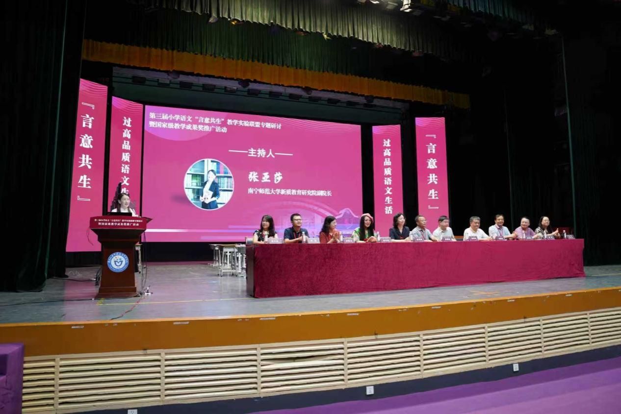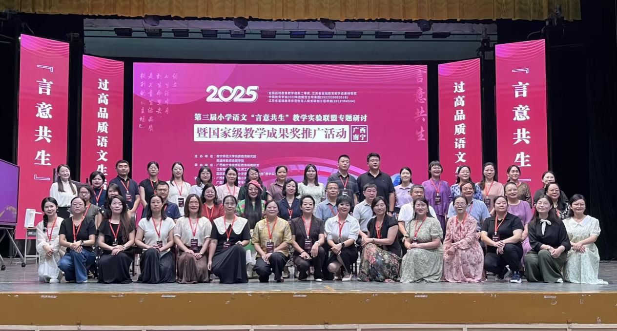 2025年10月13日至14日,best365官网新质教育研究院与南通市教师发展学院联合主办,广西南宁市青秀区教育局教研室、江苏南通姜树华名师工作室、国家级教学成果小学语文“言意共生”教学实验联盟承办,广西南宁市园湖路小学协办的“第三届小学语文‘言意共生’教学实验联盟专题研讨暨国家级成果奖推广活动”成功举办。新质教育研究院院长杨满福、新质教育研究院首席专家莫运佳、南通市教师发展学院院长孙亚丽、南宁市青秀区教育局教研室主任李雪贞等出席了开幕式。江苏省基础教育示范性育人模式研创工程项目组导师及全体成员、姜树华名师工作室成员、语文教师代表和小学生代表近1000人参加了活动。