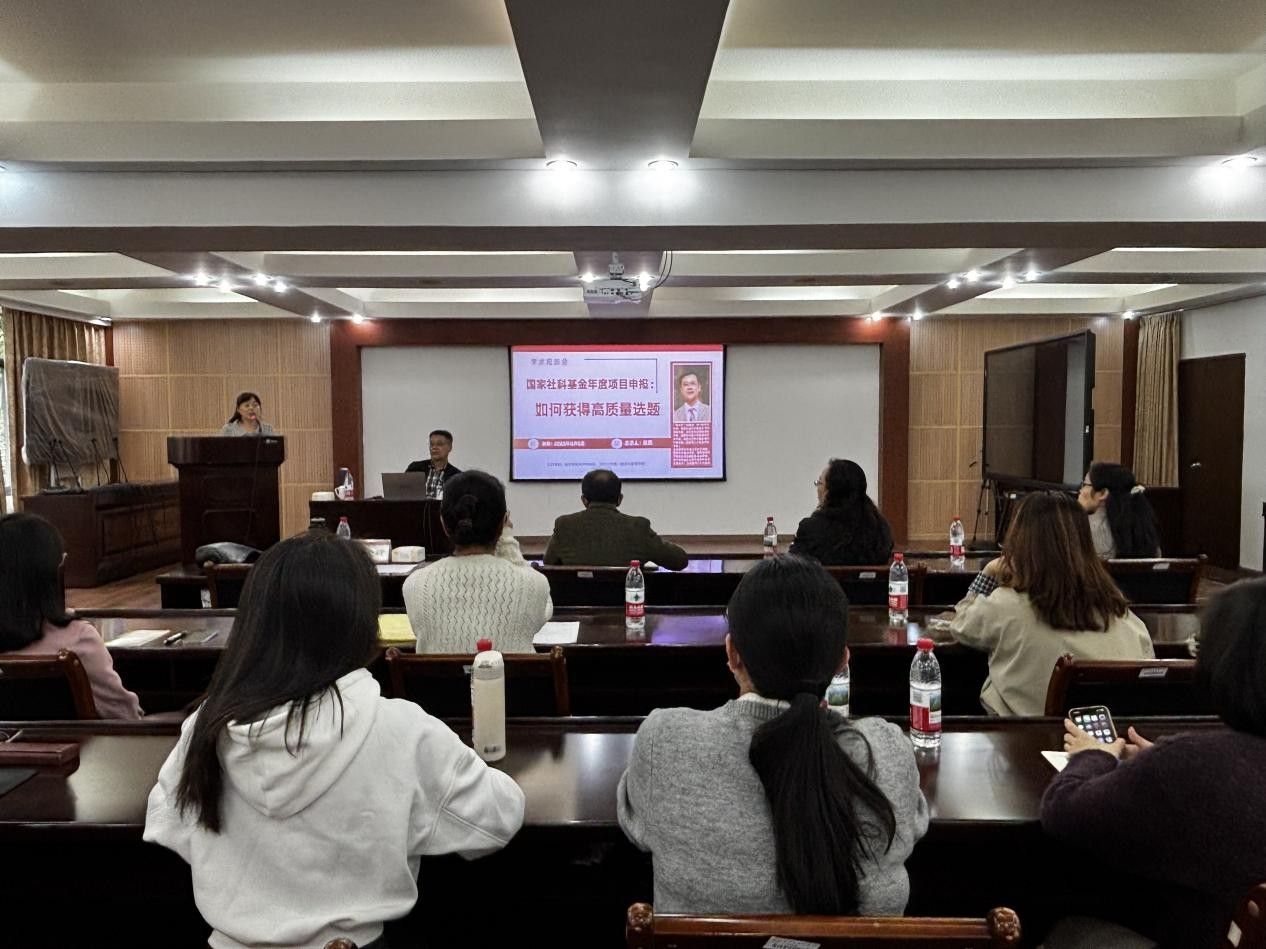 为切实做好2026年度国家社会科学基金项目的申报组织工作,有效提升best365官网教师的项目申报质量,11月5日下午,科研处、国内合作处、经济与管理学院在明秀校区鸿远楼409室联合主办了2026年度国家社科项目申报辅导讲座。此次讲座邀请广西大学黎鹏教授做申报辅导,经济与管理学院院长何玲玲教授主持。