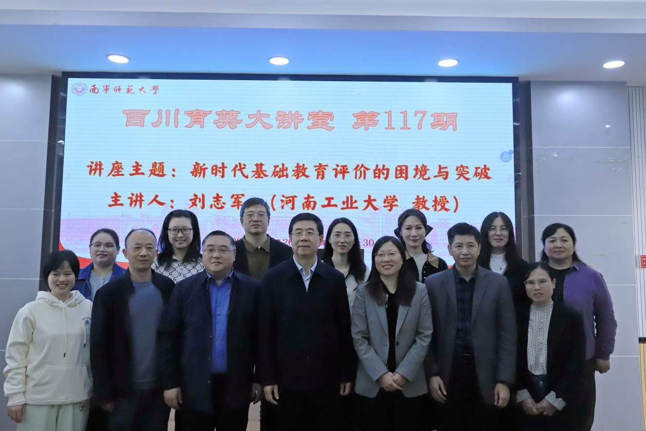 为深入解读新时代基础教育评价改革的核心要义,搭建学术研究与教育实践的沟通桥梁,助力教育强国建设,11月26日,由best365足球官网教育科学学院主办、广西教育现代化与质量监测研究中心承办的《百川育英大讲堂》第117期讲座,在五合校区理综1003室顺利举行。本期讲座特邀河南工业大学党委书记刘志军教授担任主讲嘉宾,主题是“新时代基础教育评价的困境与突破”,教育科学学院院长李强教授主持讲座。