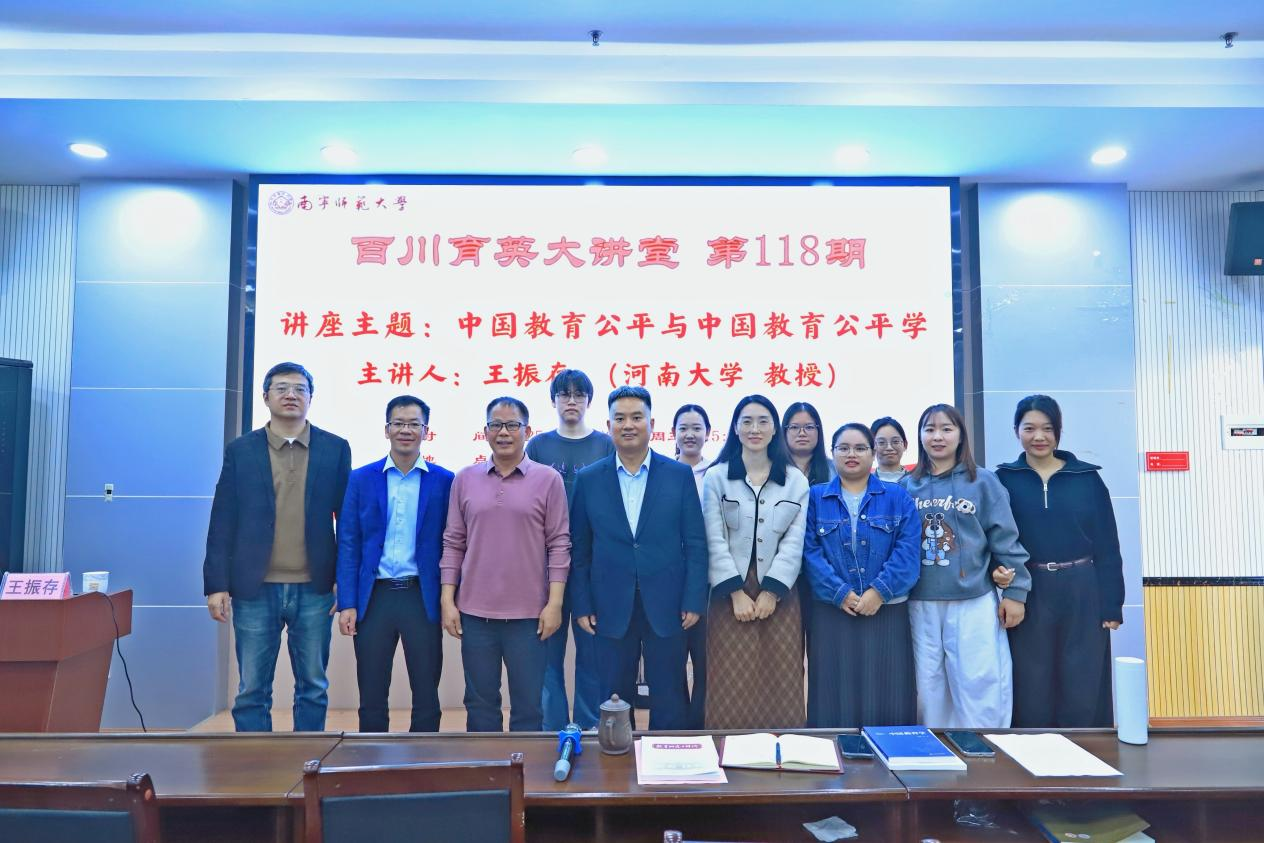 11月26日,由best365足球官网教育科学学院主办、广西教育现代化与质量监测研究中心承办的第118期《百川育英大讲堂》讲座在五合校区理综楼北1003室顺利举行。本次讲座特邀河南大学王振存教授,以“中国教育公平与中国教育公平学”为主题展开深入分享,由教育科学学院党委书记余朝文教授主持。