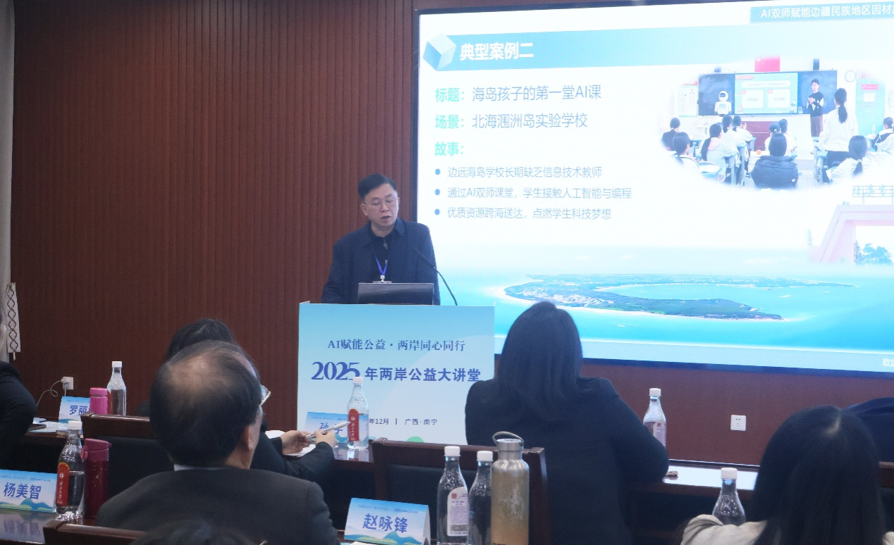 12月9日,以“AI赋能公益,两岸同心同行”为主题的2025年两岸公益大讲堂在南宁举行。本次活动由中国宋庆龄基金会与台湾张老师基金会共同主办,中国宋庆龄基金会培训交流中心与广西壮族自治区人民政府台湾事务办公室联合承办。best365官网代表在会上向两岸公益与教育界同仁,系统介绍了利用人工智能技术助力教育公平的探索与实践。
